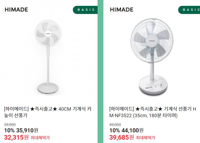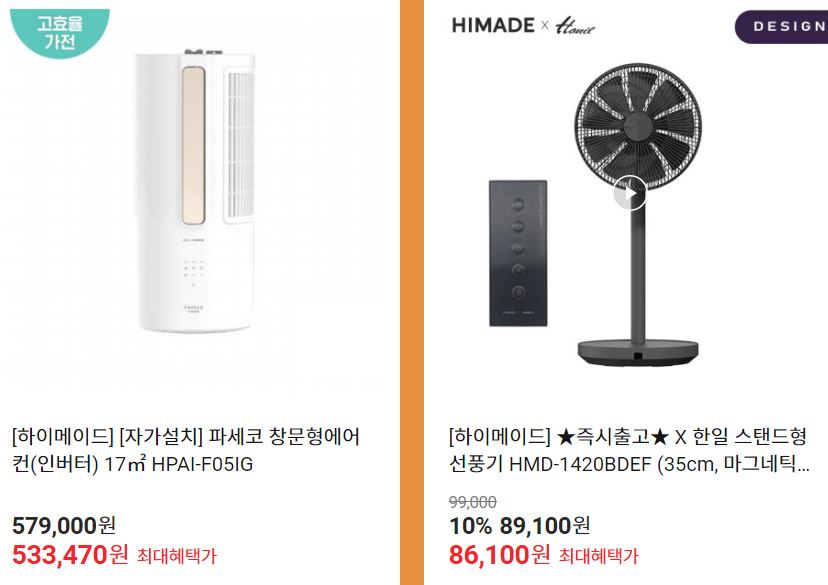 할인 품목 : 선풍기, 에어컨, 케이블 등