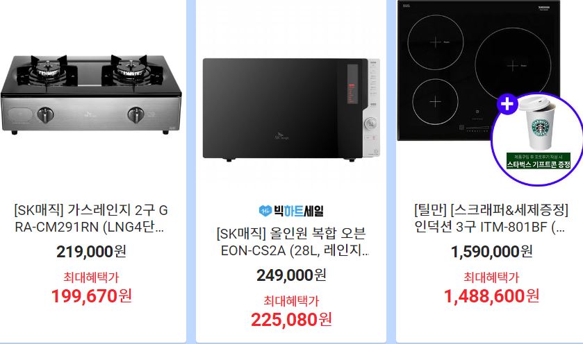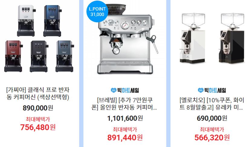할인 품목 : 커피머신, 압력밥솥, 음식물 처리기 등