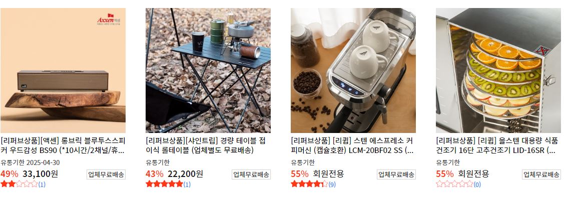 떠리몰 사이트에서 리퍼 제품 할인 이벤트를 진행하네요.