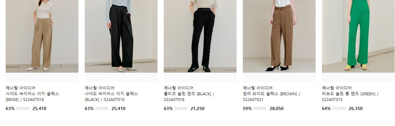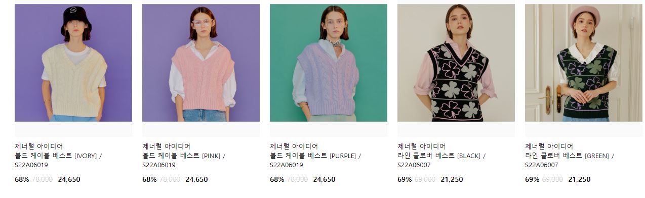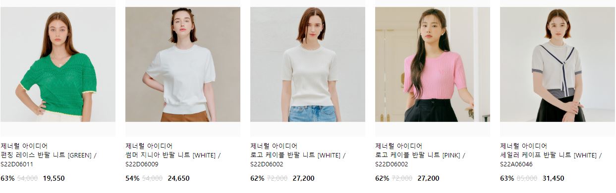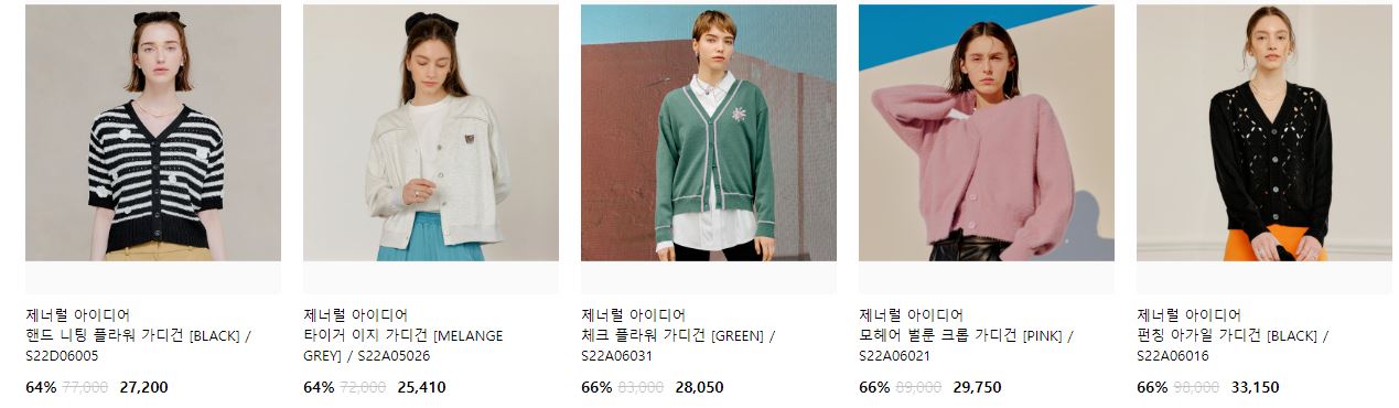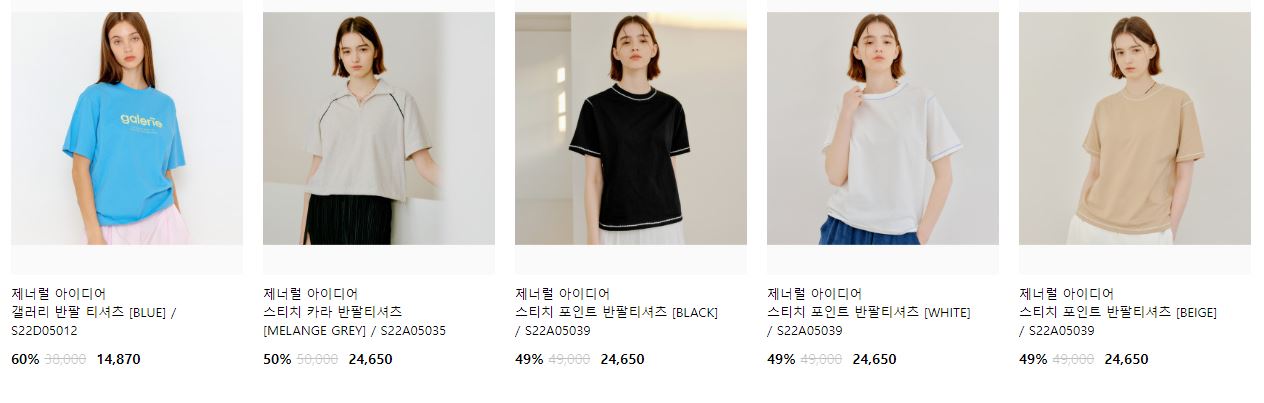할인 품목 : 니트, 팬츠, 티셔츠 등