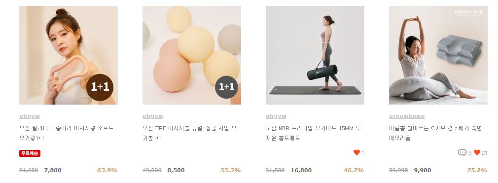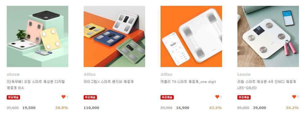 할인 품목 : 홈트매트, 체중계, 식품 등