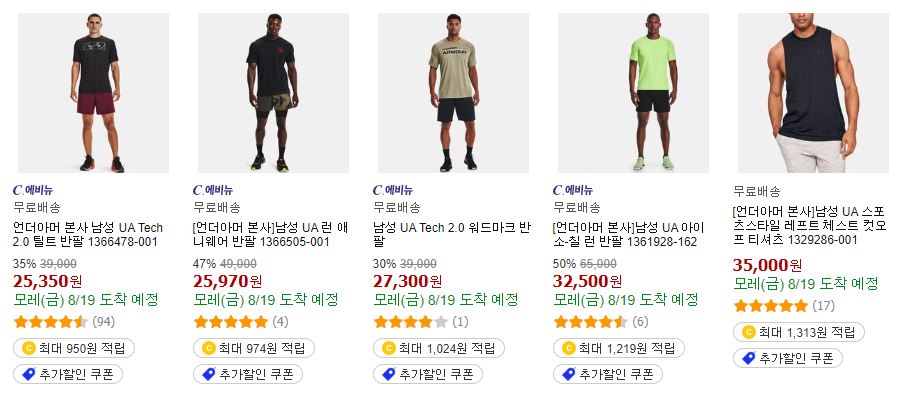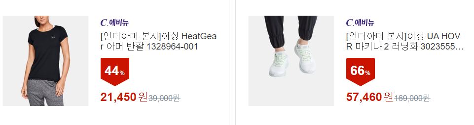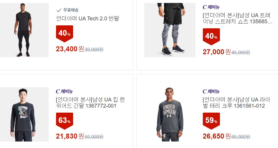 언더아머 다양한 제품을 할인 판매하네요.