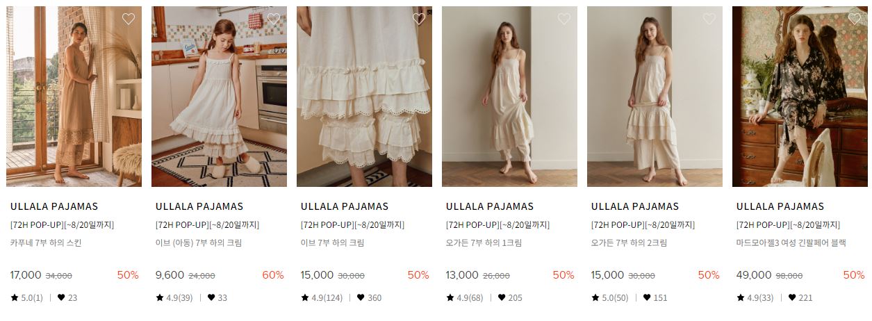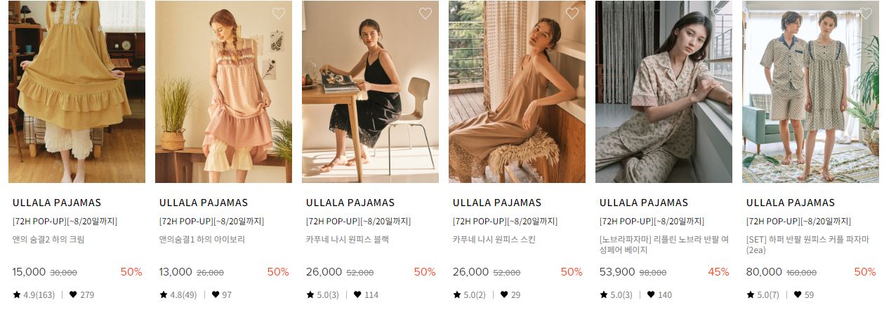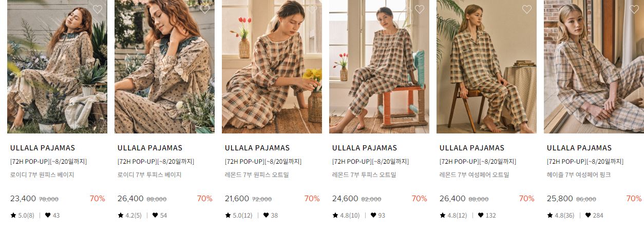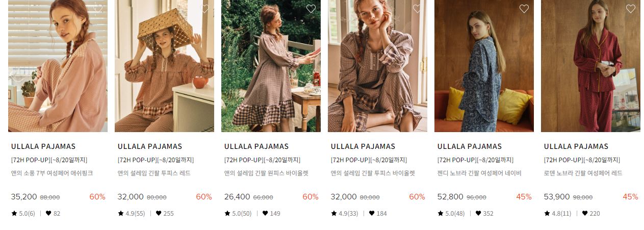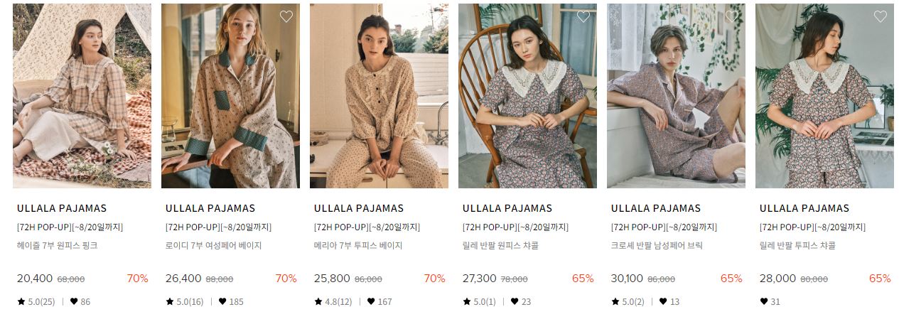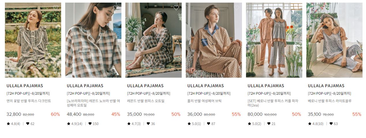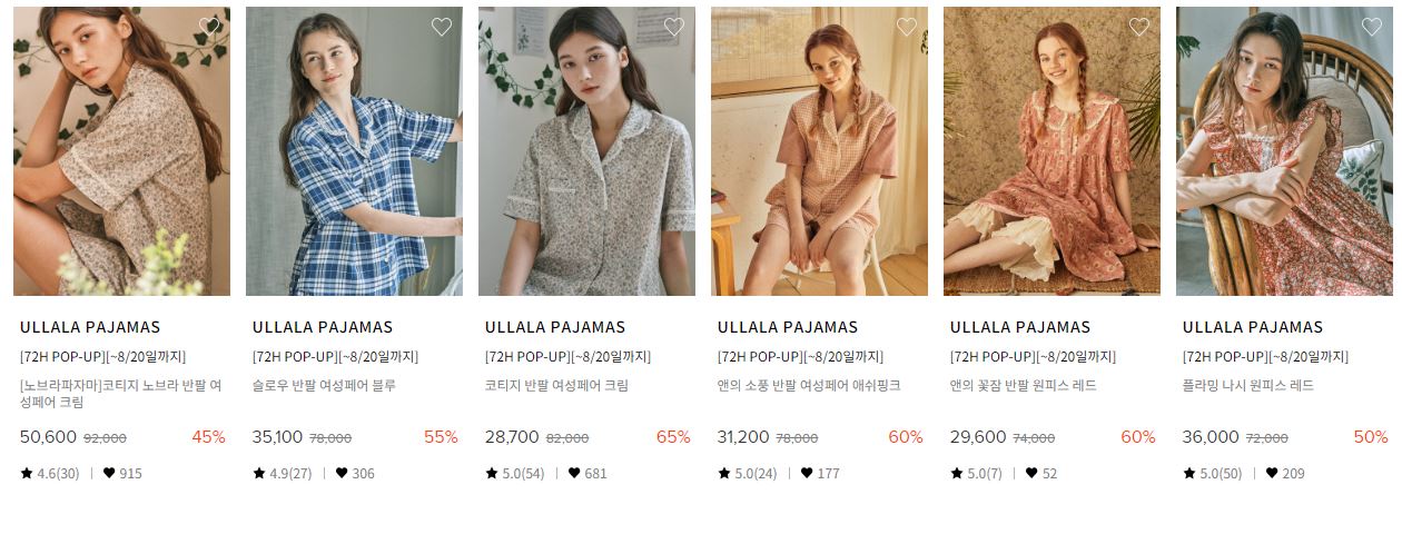 울랄라파자마 다양한 제품을 할인 판매하네요.