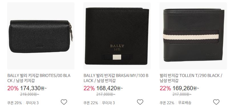 할인 품목 : 지갑, 벨트, 티셔츠 등