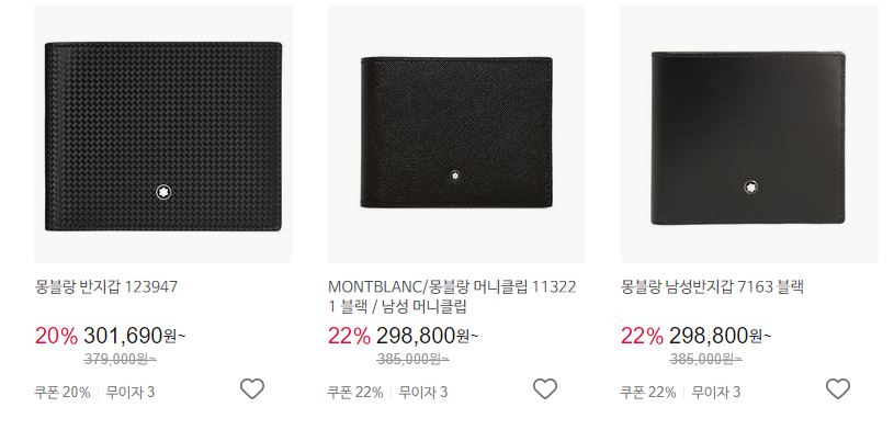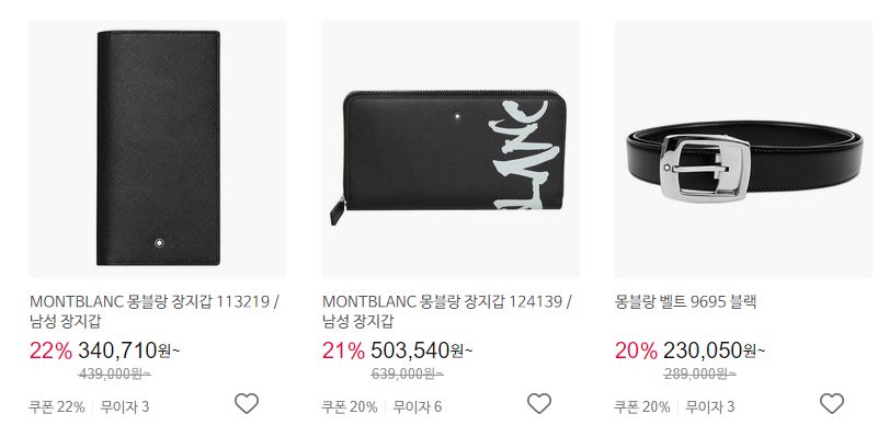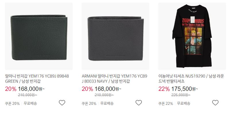 할인 품목 : 지갑, 벨트, 티셔츠 등