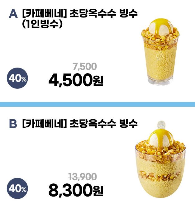 할인 품목 : 초당옥수수 빙수, 우리흑임자 빙수 등