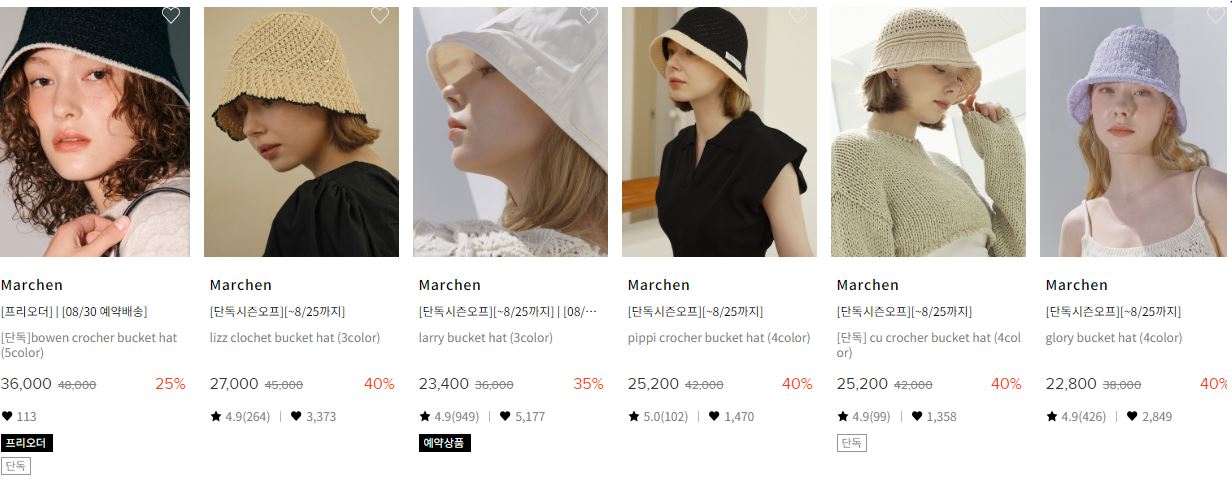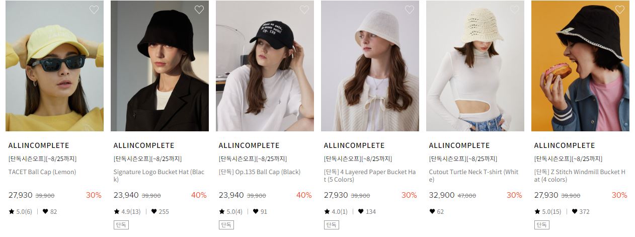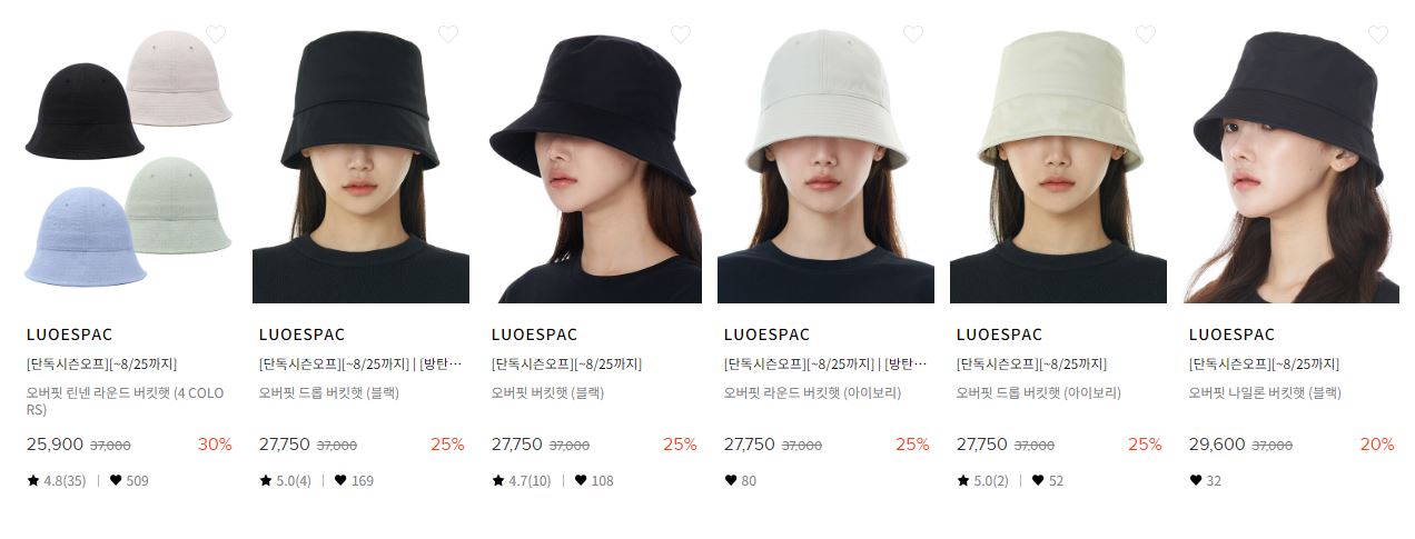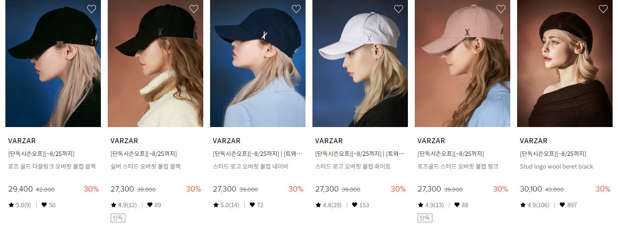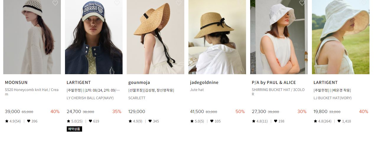 할인 품목 : 모자