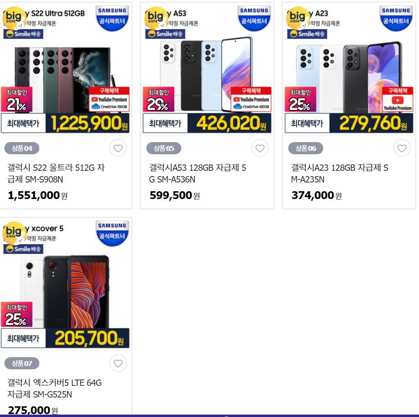 삼성 갤럭시 다양한 제품을 할인 판매하네요.