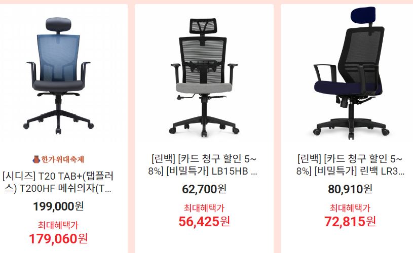 할인 품목 : 의자, 노트북, 휴대폰 등
