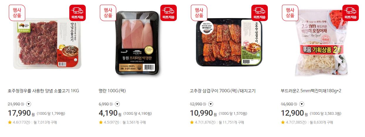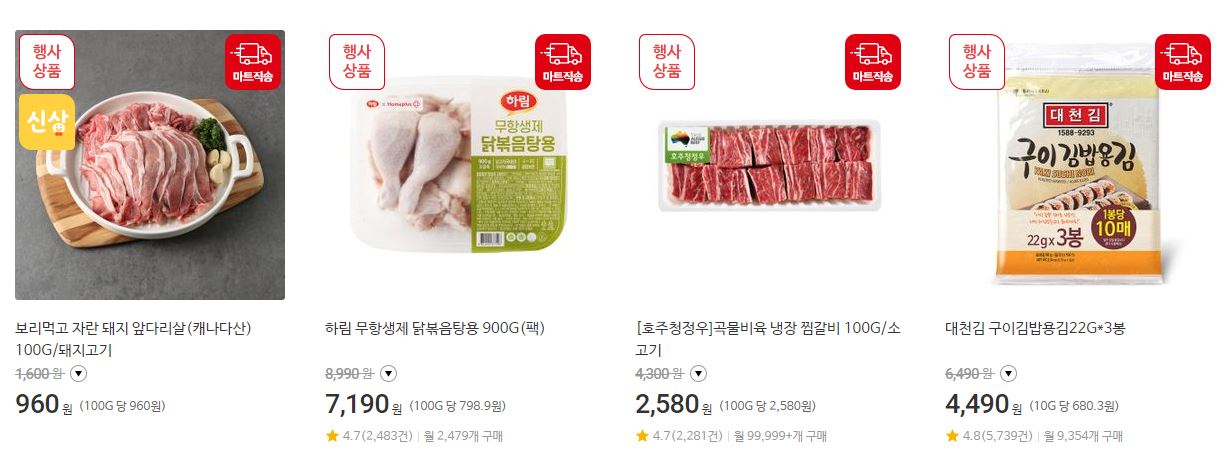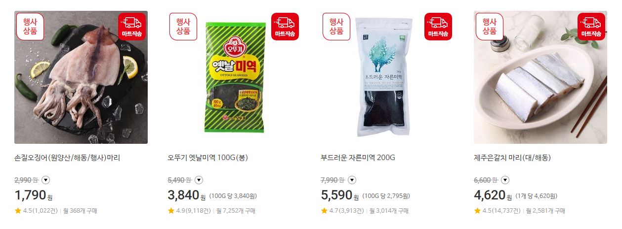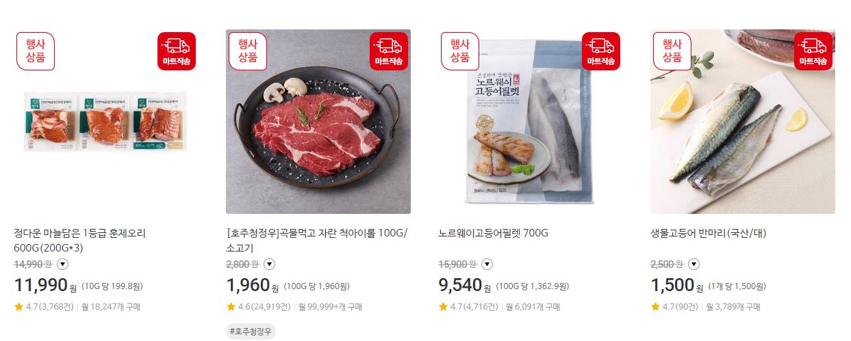 할인 품목 : 축산물, 수산물, 가공식품 등
