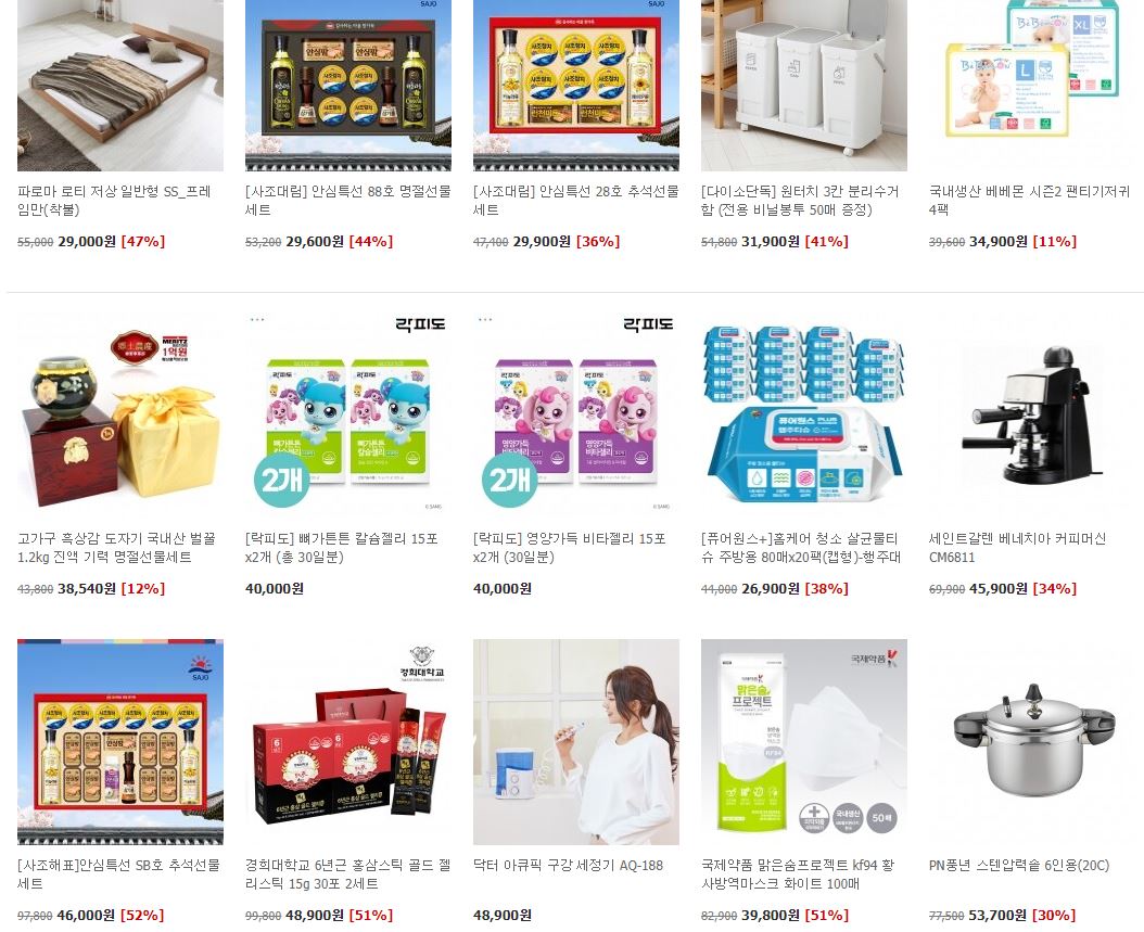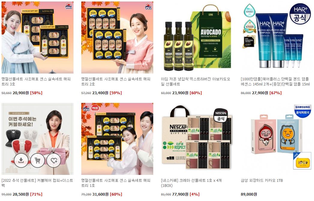 할인 품목 : 선물세트, 화장품 등