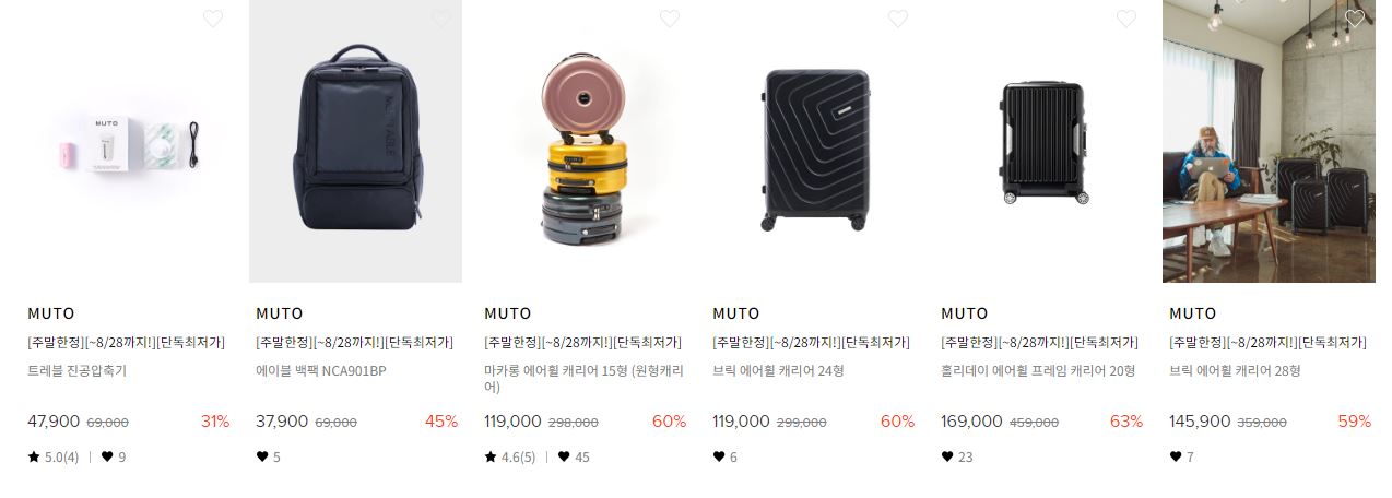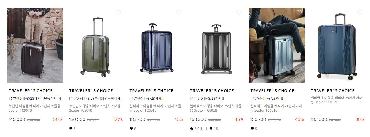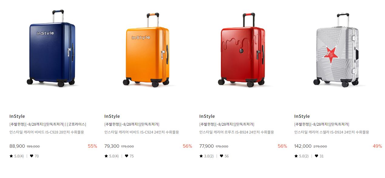 할인 품목 : 캐리어, 백팩, 의자 등