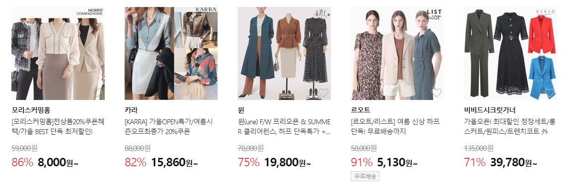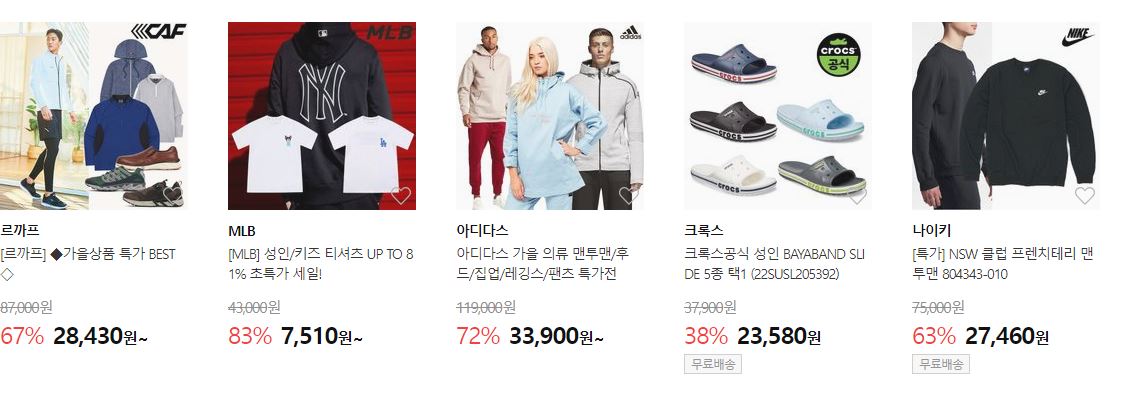 할인 품목 : 의류, 신발, 가방 등