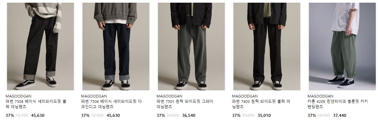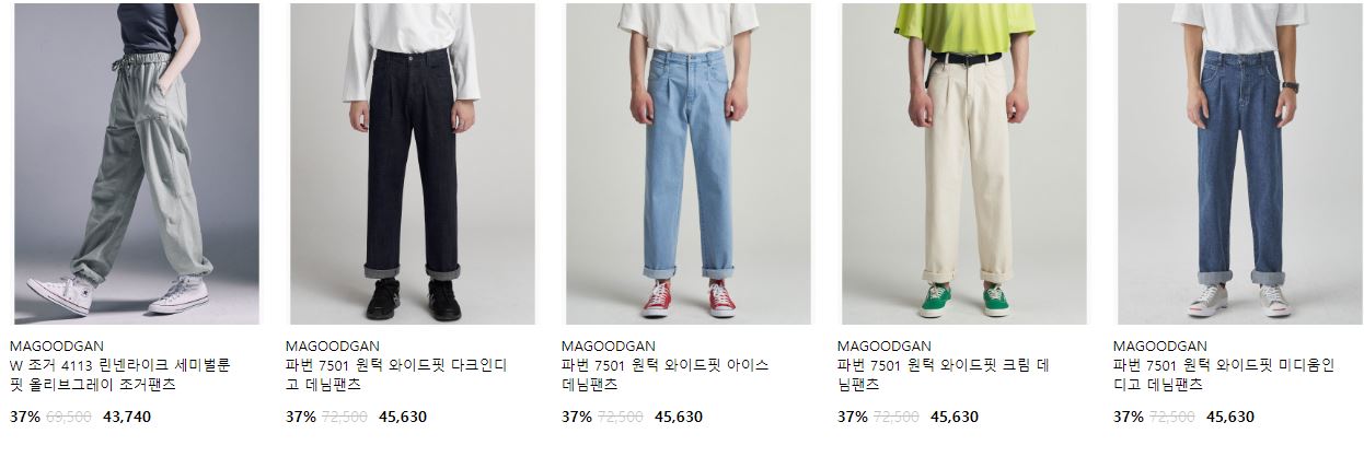 할인 품목 : 팬츠, 티셔츠 등