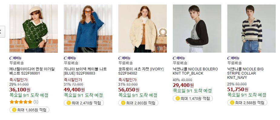 할인 품목 : 가디건, 티셔츠, 스커트 등