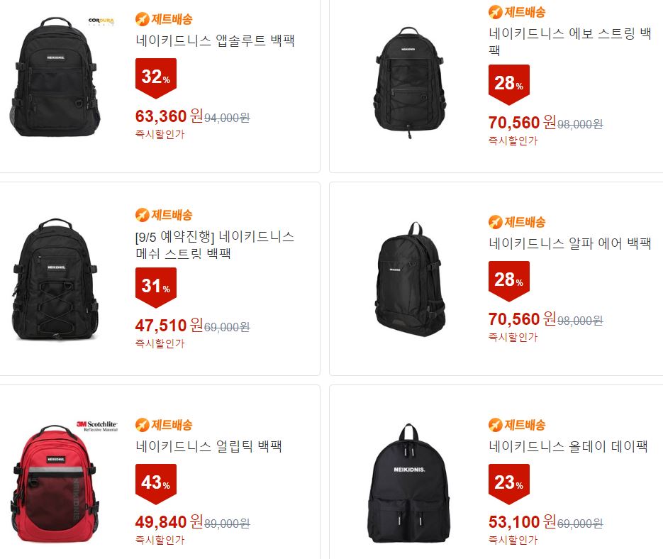 할인 품목 : 백팩, 크로스백, 티셔츠 등