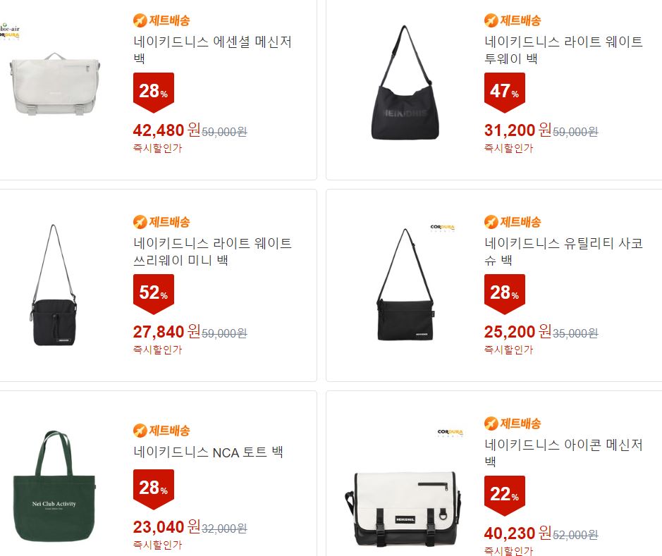 할인 품목 : 백팩, 크로스백, 티셔츠 등