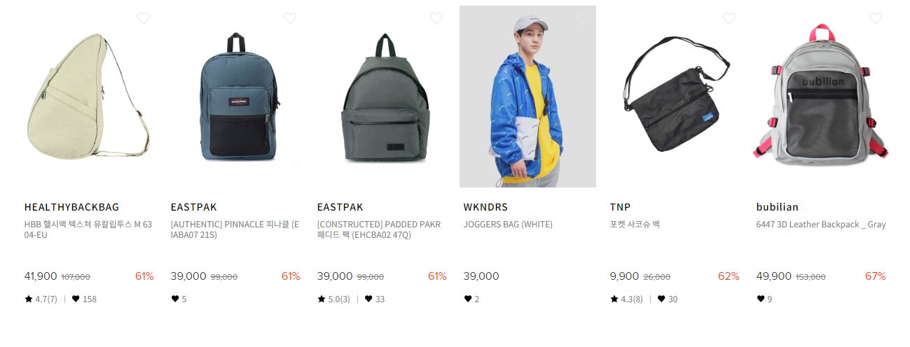 할인 품목 : 자켓, 티셔츠, 셔츠, 가방 등