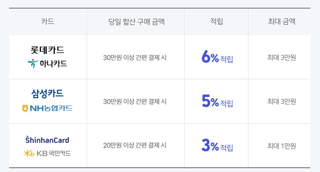 카드사별 추가 적립