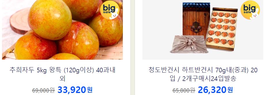 할인 품목 : 축산물, 과일 등