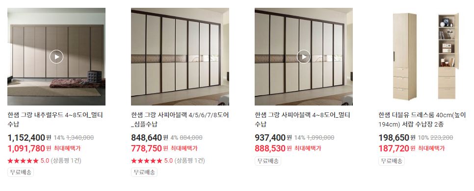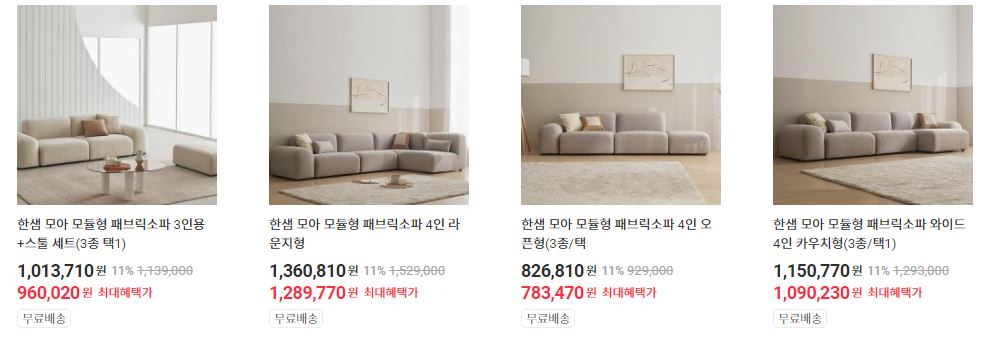 한샘 다양한 제품을 할인 판매하네요.