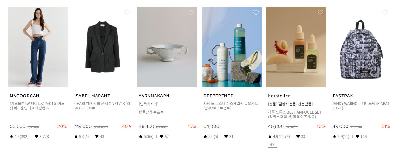 할인 품목 : 의류, 가방, 신발, 화장품 등
