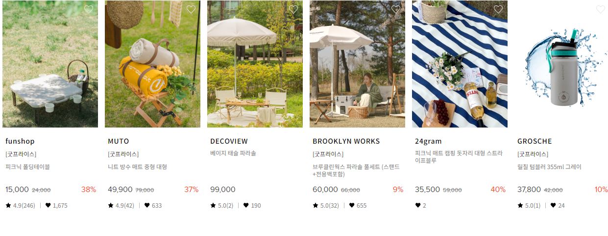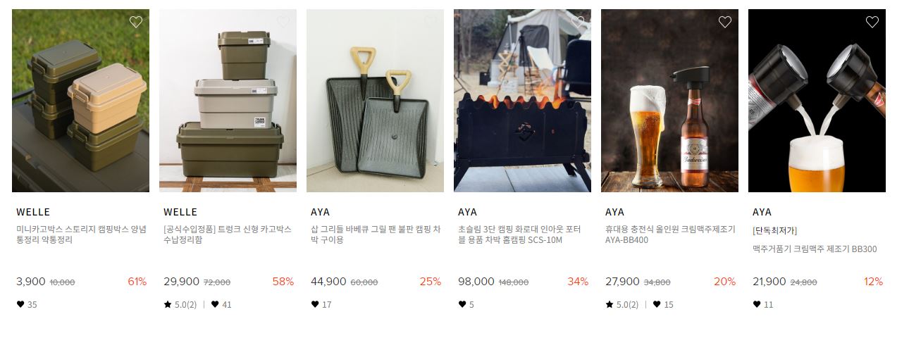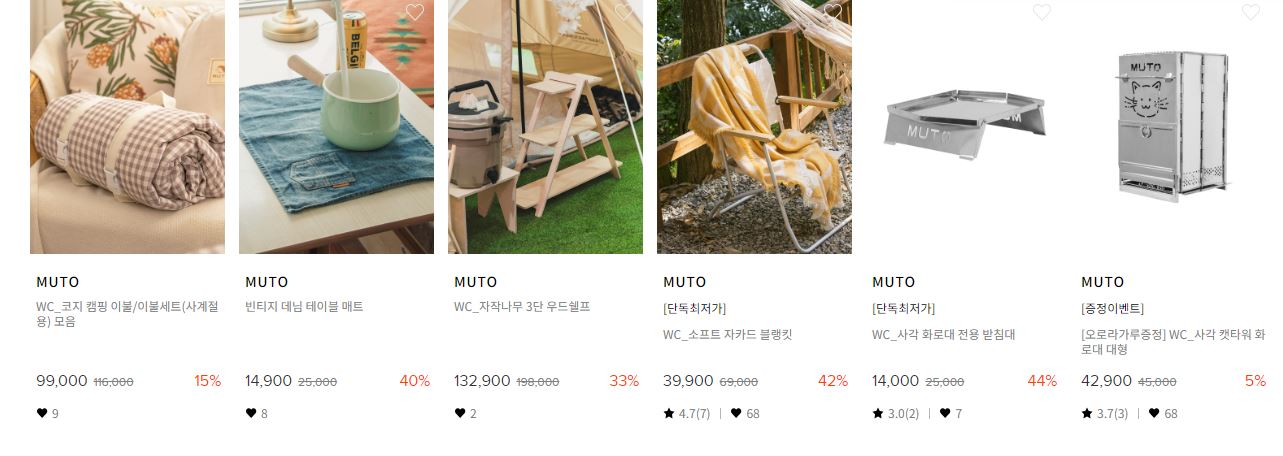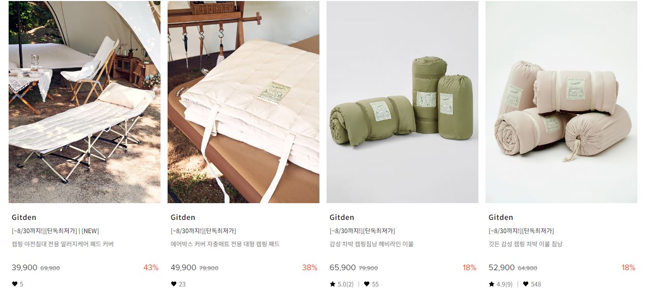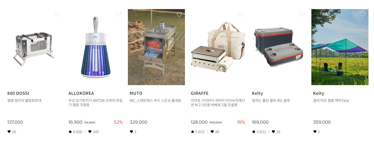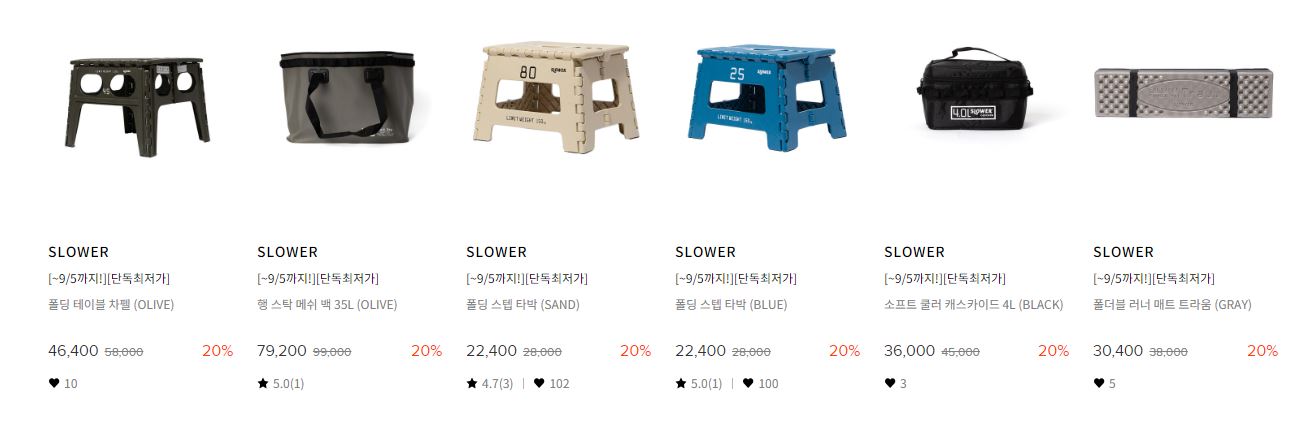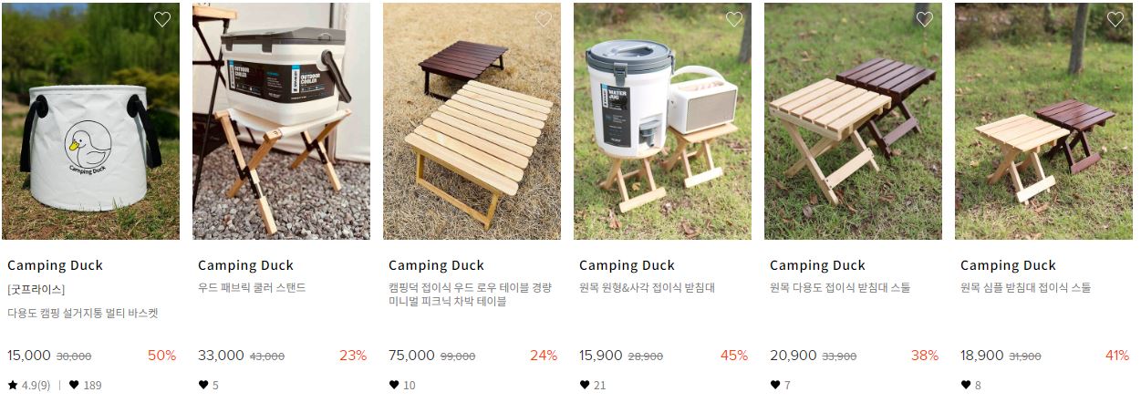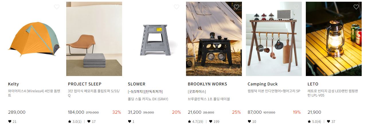 할인 품목 : 테이블, 의자, 텐트, 랜턴 등