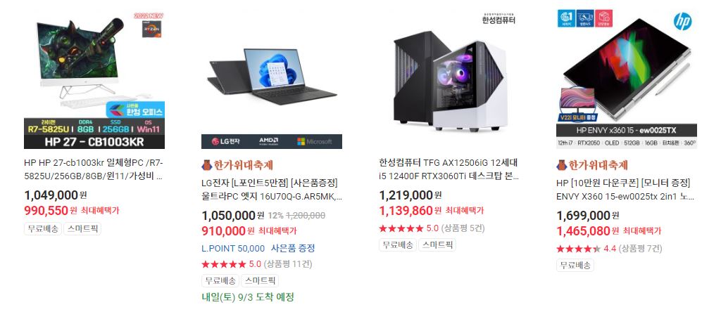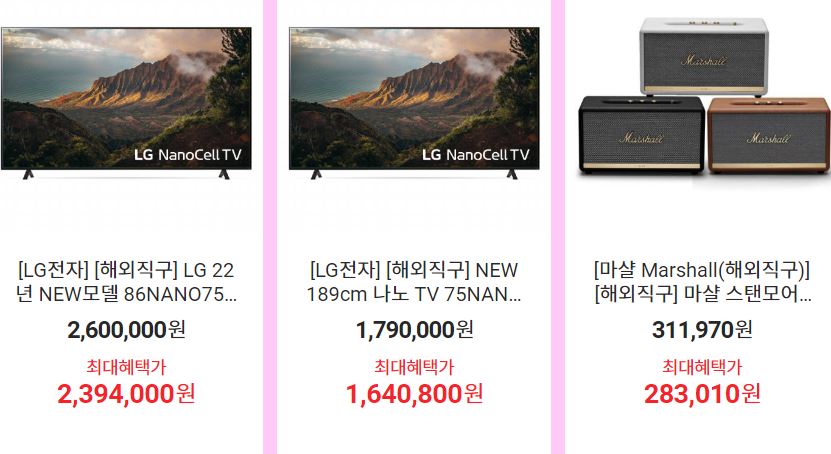 할인 품목 : TV, 노트북, 데스크탑, 휴대폰 등