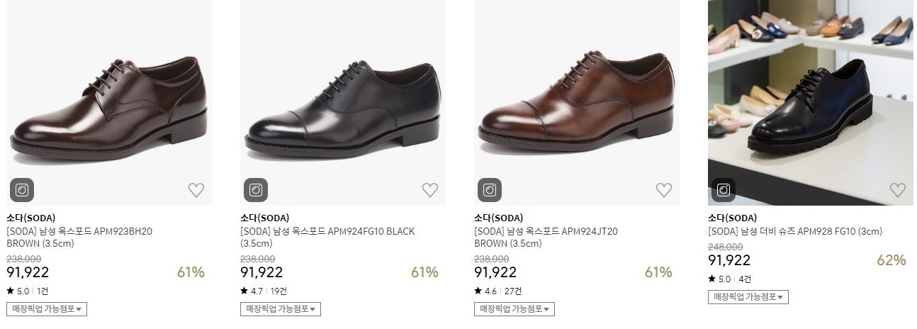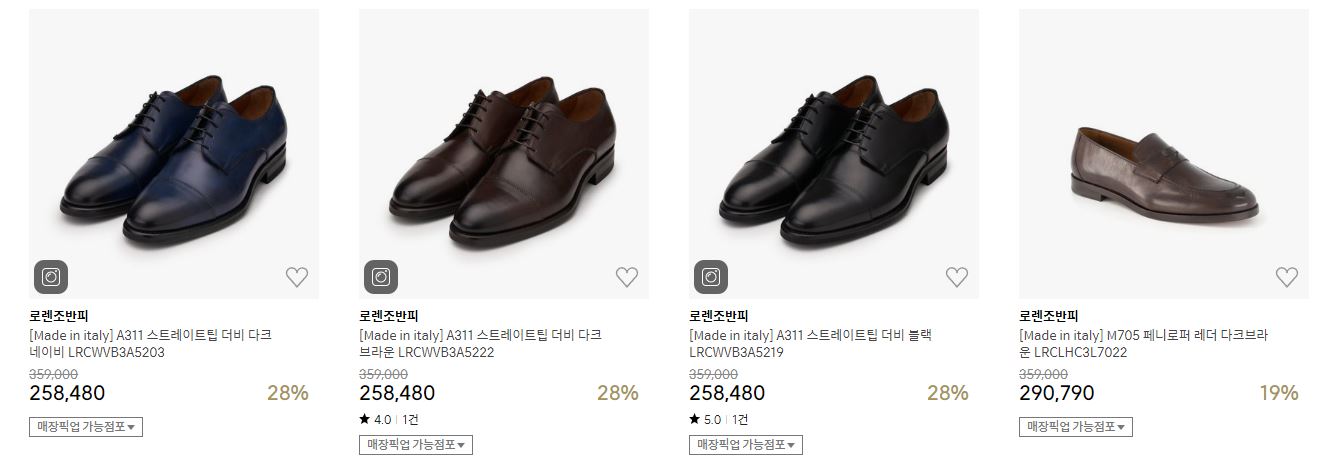 할인 품목 : 펌퍼스, 로퍼, 운동화 등