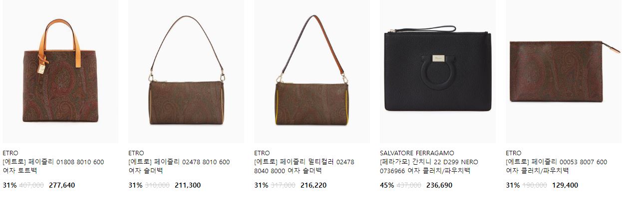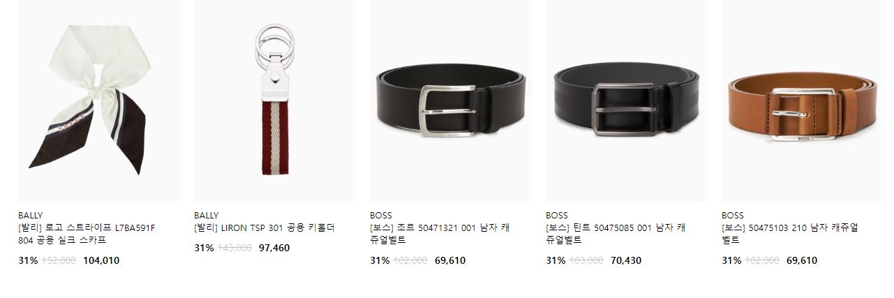 할인 품목 : 의류, 가방, 지갑, 벨트 등