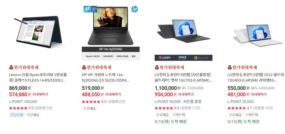 할인 품목 : 노트북, 데스크탑