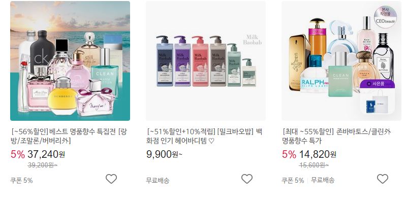 할인 품목 : 향수, 샴푸, 고데기 등
