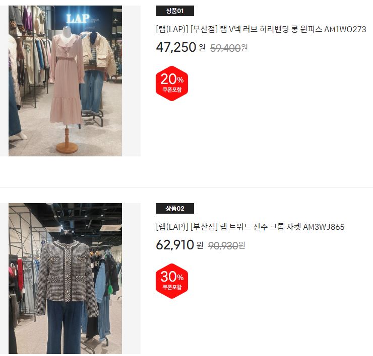 할인 품목 : 원피스, 자켓, 팬츠 등