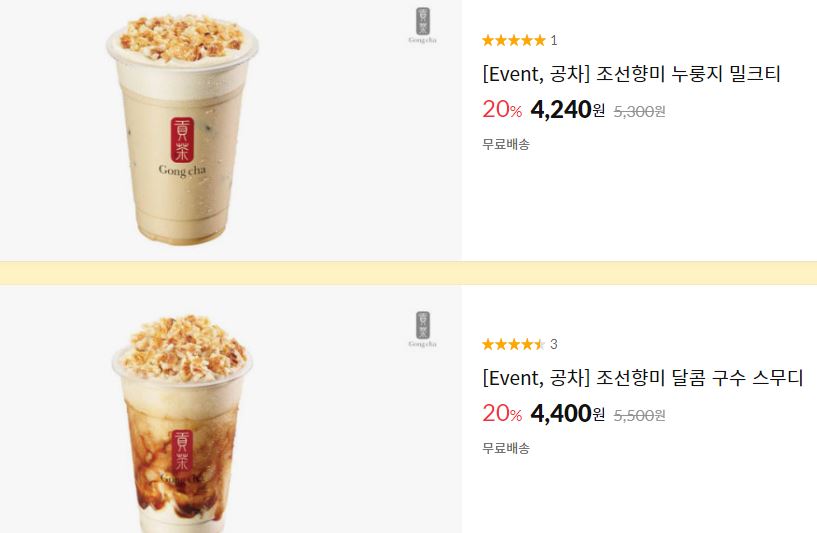 할인 품목 : 상품권, 조선향미 누룽지 밀크티 등