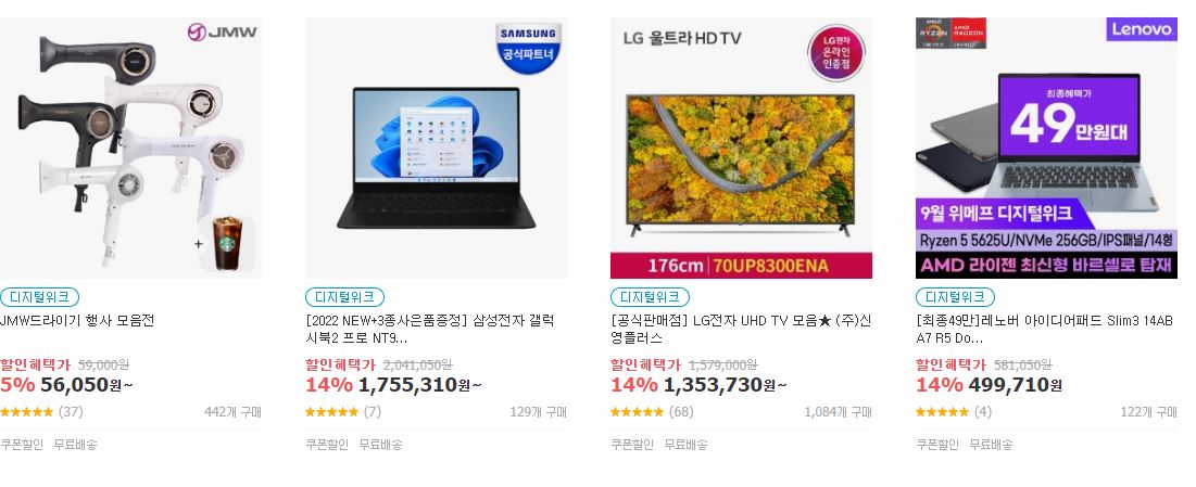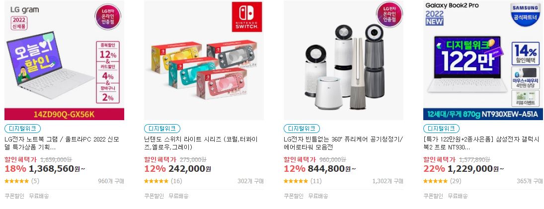 할인 품목 : 노트북, 모니터, 세탁기 등