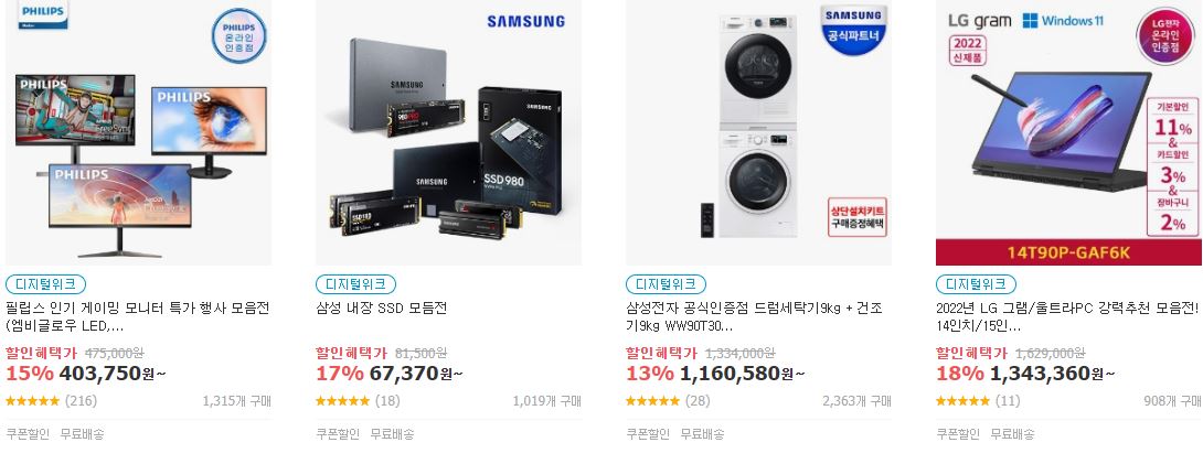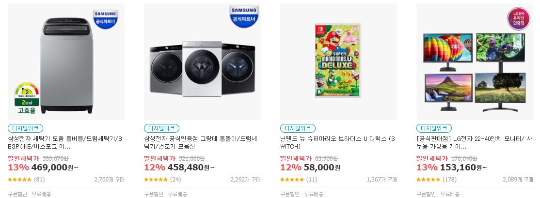 할인 품목 : 노트북, 모니터, 세탁기 등