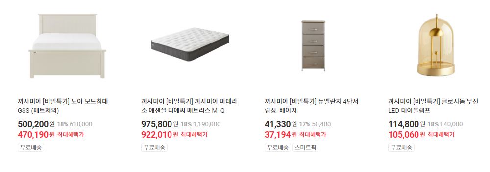 할인 품목 : 매트리스, 소파, 서랍장 등