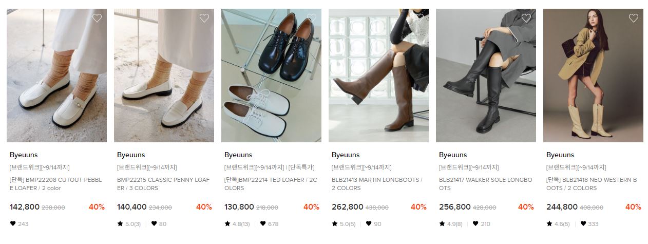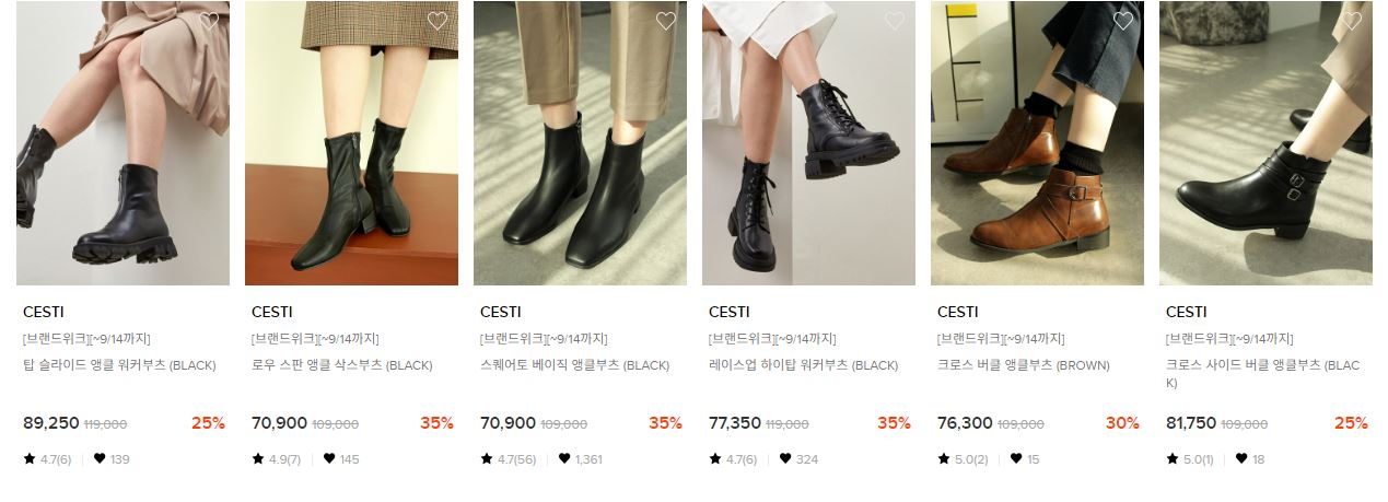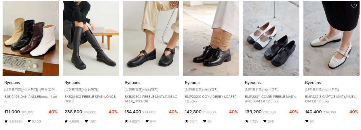 할인 품목 : 부츠, 로퍼 등