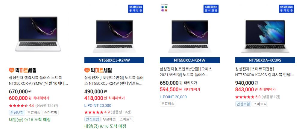 삼성 다양한 제품을 할인 판매하네요.