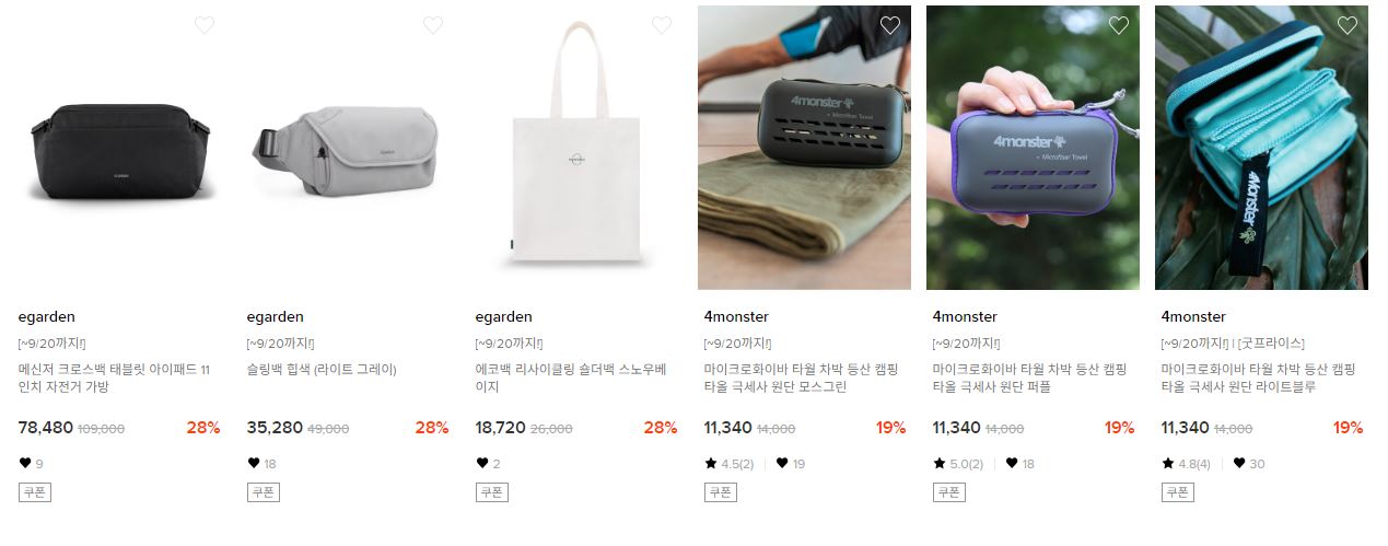 할인 품목 : 캠핑매트, 가방 등