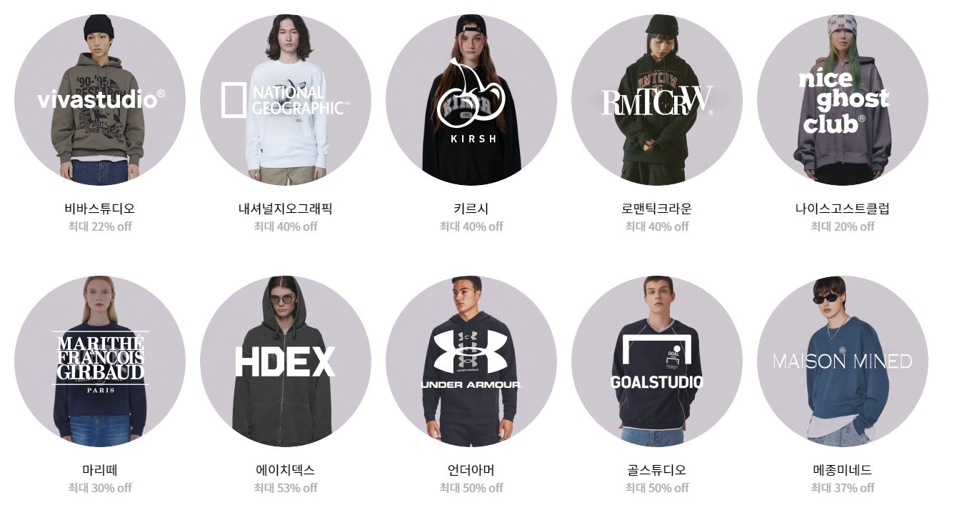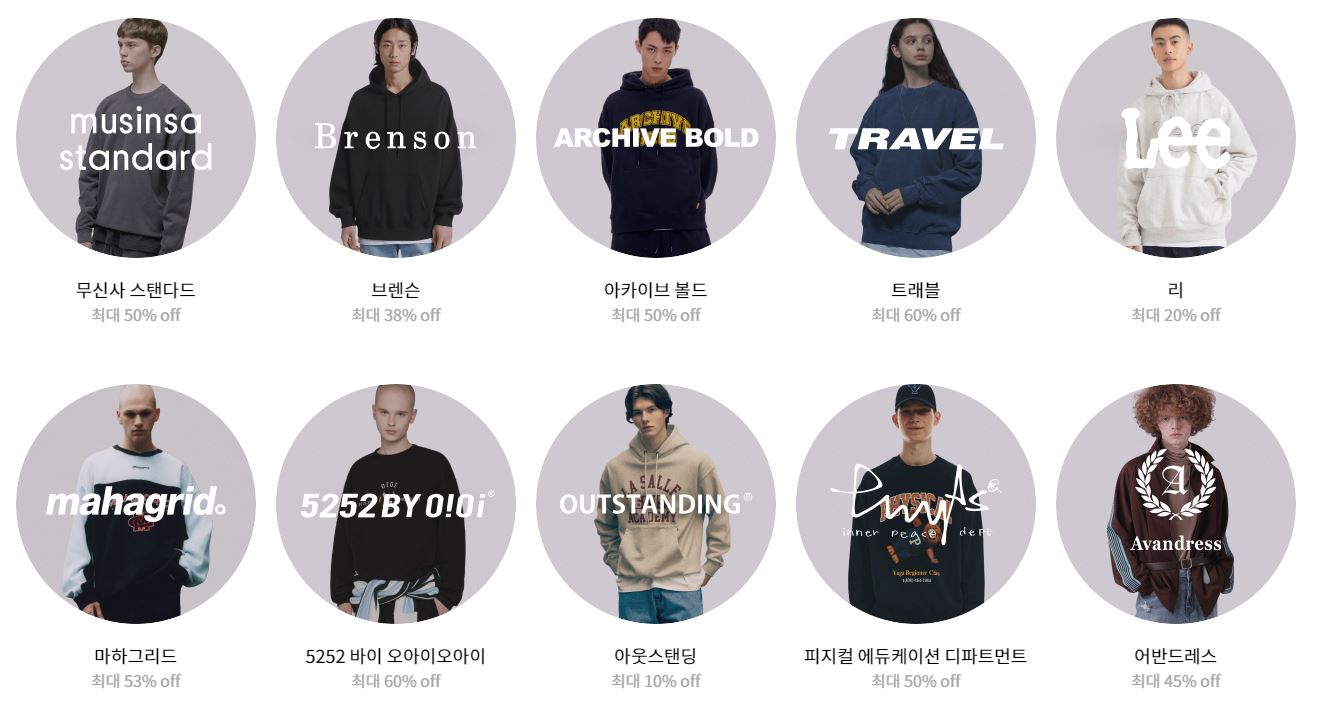 할인 품목 : 맨투맨, 후드티 등