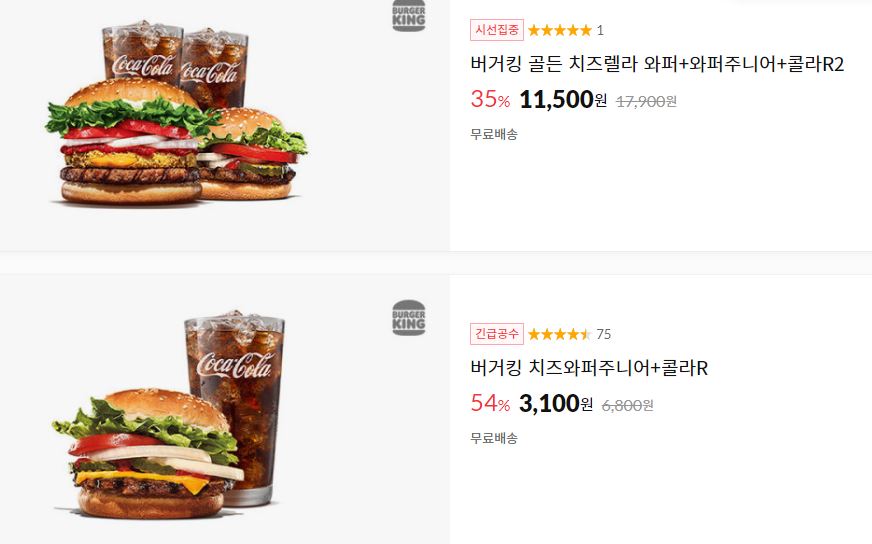 할인 메뉴 : 치즈렐라 와퍼, 치즈와퍼주니어 등