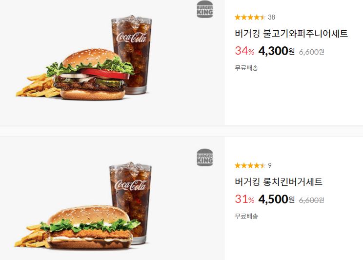 버거킹 다양한 메뉴를 할인 판매하네요.