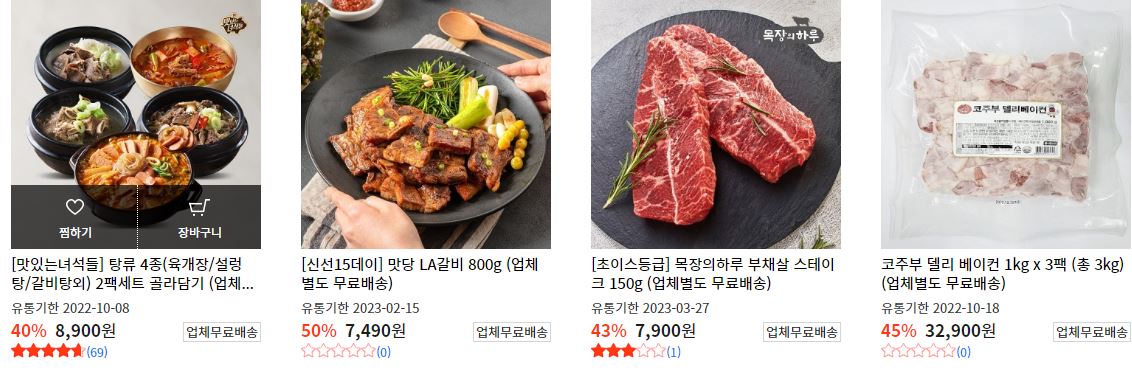 할인 품목 : 냉면, 육개장, 스테이크 등