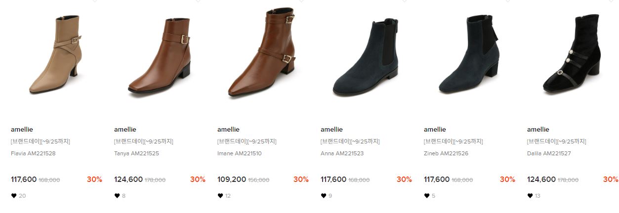 할인 품목 : 부츠, 플랫슈즈 등
