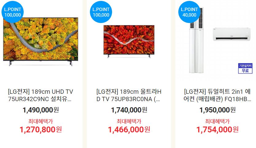 LG전자 다양한 제품을 할인 판매하네요.