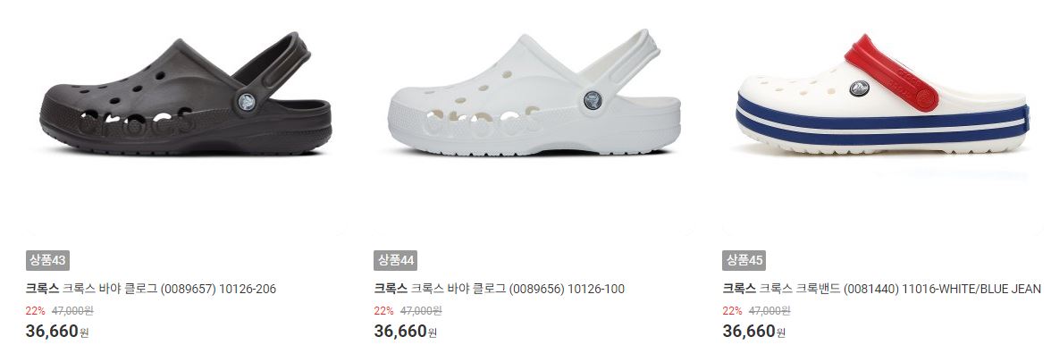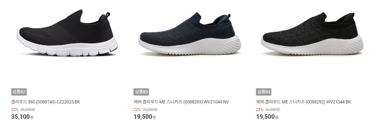 할인 품목 : 운동화, 슬리퍼 등