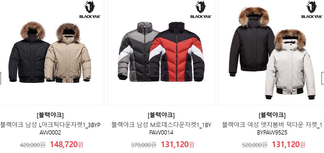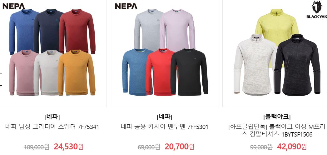 할인 품목 : 점퍼, 티셔츠, 팬츠 등