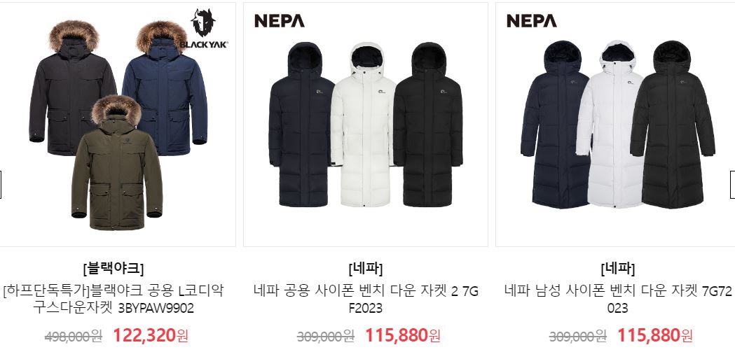 할인 품목 : 점퍼, 티셔츠, 팬츠 등