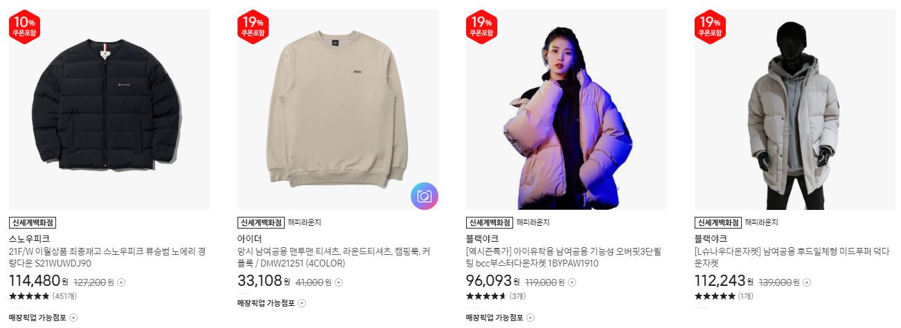 할인 품목 : 의류, 화장품 등